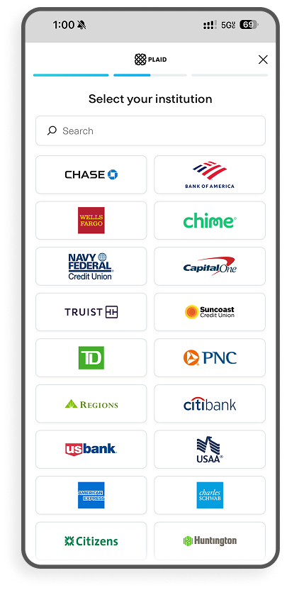 Link your bank account in seconds using encrypted, bank-level authentication. You stay in control at every step.